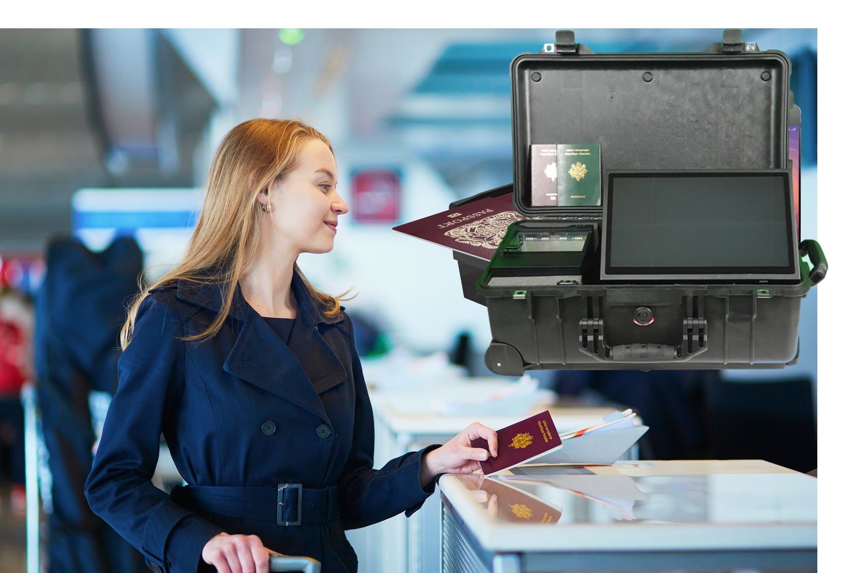 VIDOC® utilise un scanner MRTD et est disponible dans différentes configurations (desktop, laptop, kiosk, valises durcies, …).