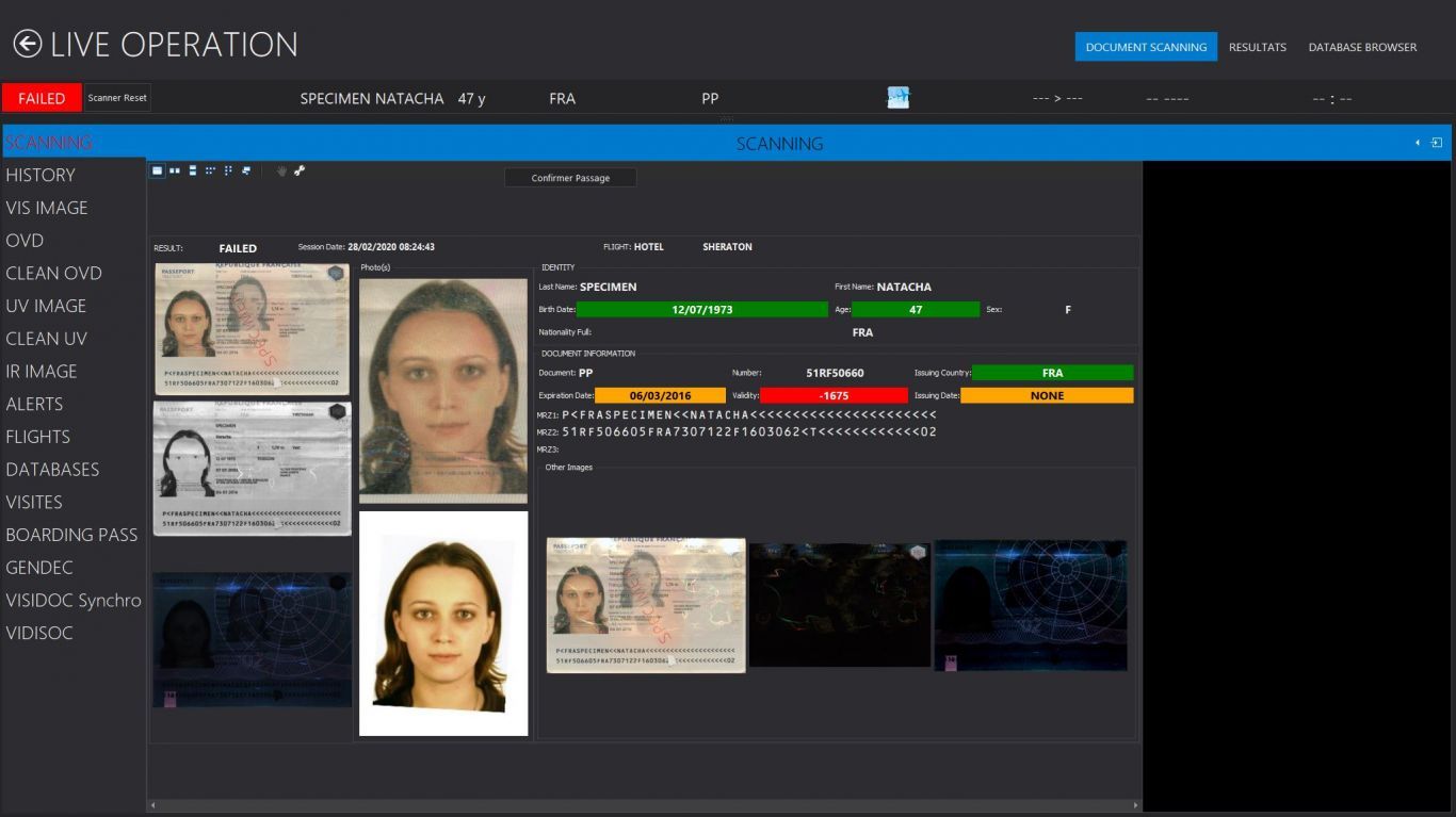 Il intègre une base de données propriétaire de plus de 4000 documents d’identité et de voyage, et peut être connecté à des bases de données internes ou externes.